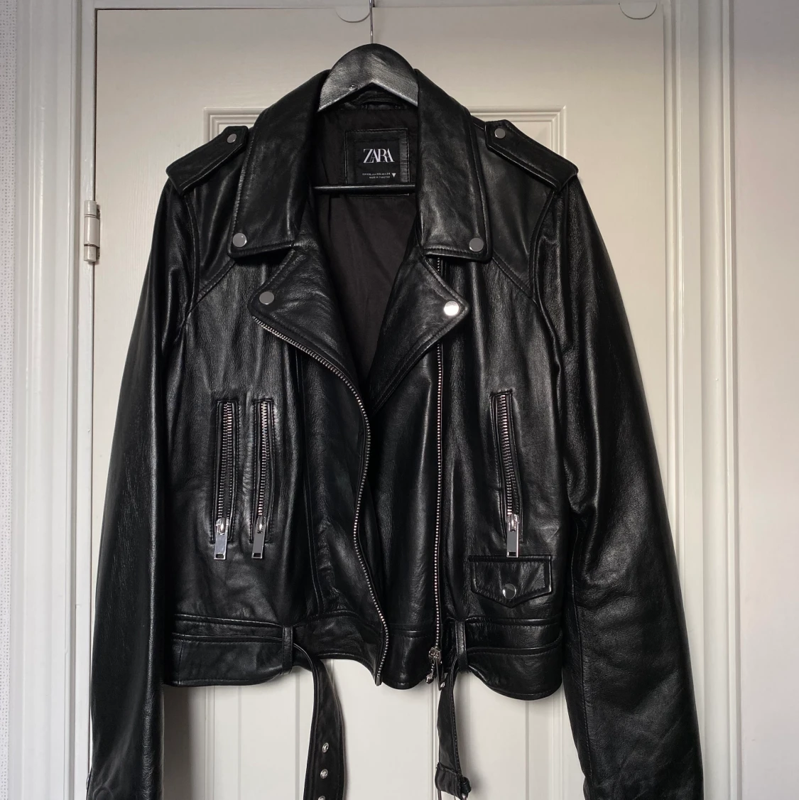 Säljer min jättesnygga skinn jacka från zara. Vill köpa en annan modell därför säljer jag denna ❤️den är i en storlek xxl men sitter som en L/XL. Priset är 500+ frakt 99kr🥰