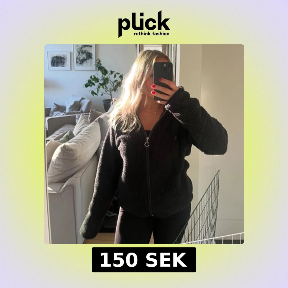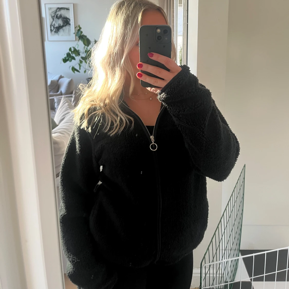 Mysig svart teddyjacka med dragkedja framtill. Jackan har långa ärmar och en avslappnad passform.