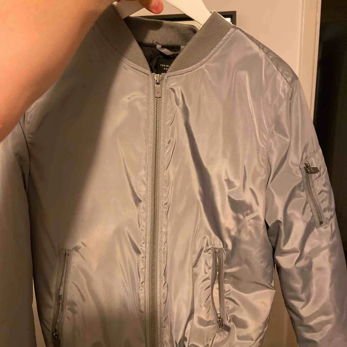 Tvääärfet bomberjacka i silver. Den e ganska tjock så man blir inte lätt kall. Säljer pga används allt för sällan. Så inte några defekter eller sådant. Köpt på lager för jag vet inte hur mycket.