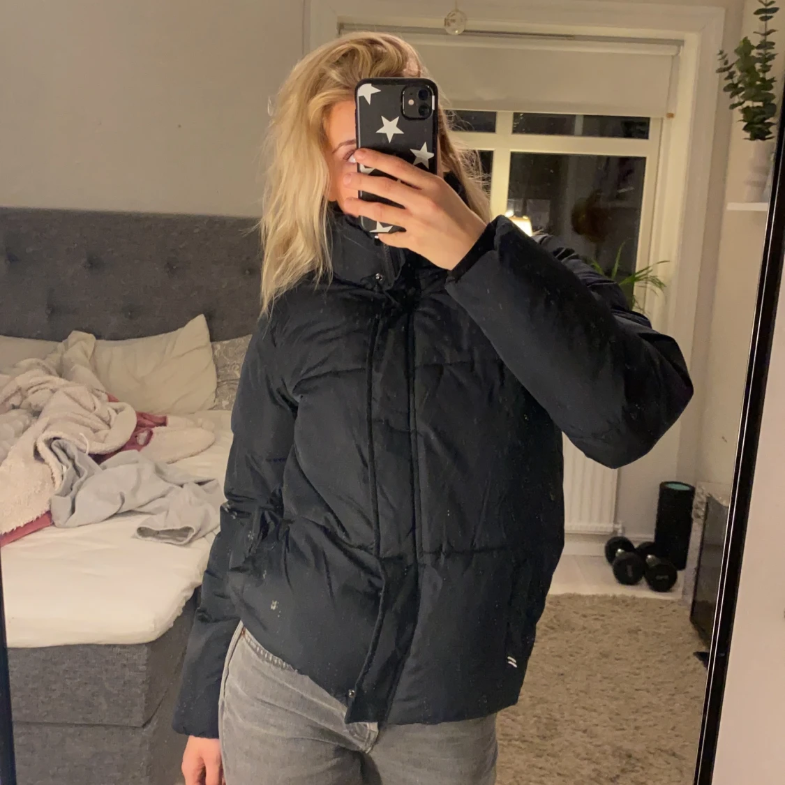 Säljer denna svart vinterjacka, passar mig som brukar ha xs. I nyskick