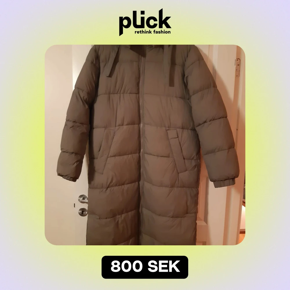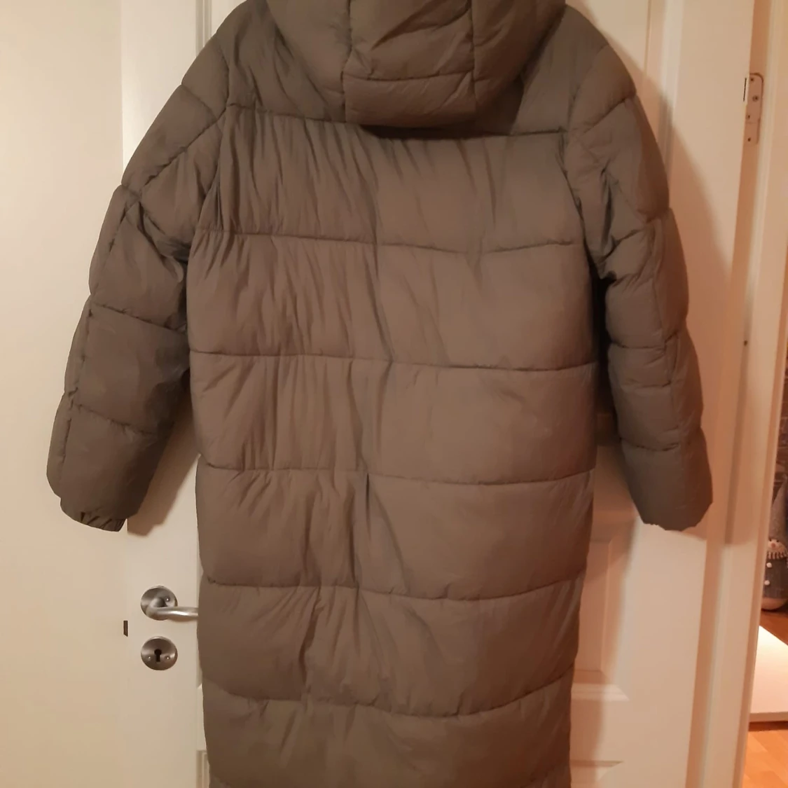 Säljer en lång dunjacka i mycket bra skick. Den är perfekt för kalla vinterdagar med sin quiltade design och långa ärmar. Jackan har en huva och stängs med dragkedja. Supermysig och varm!