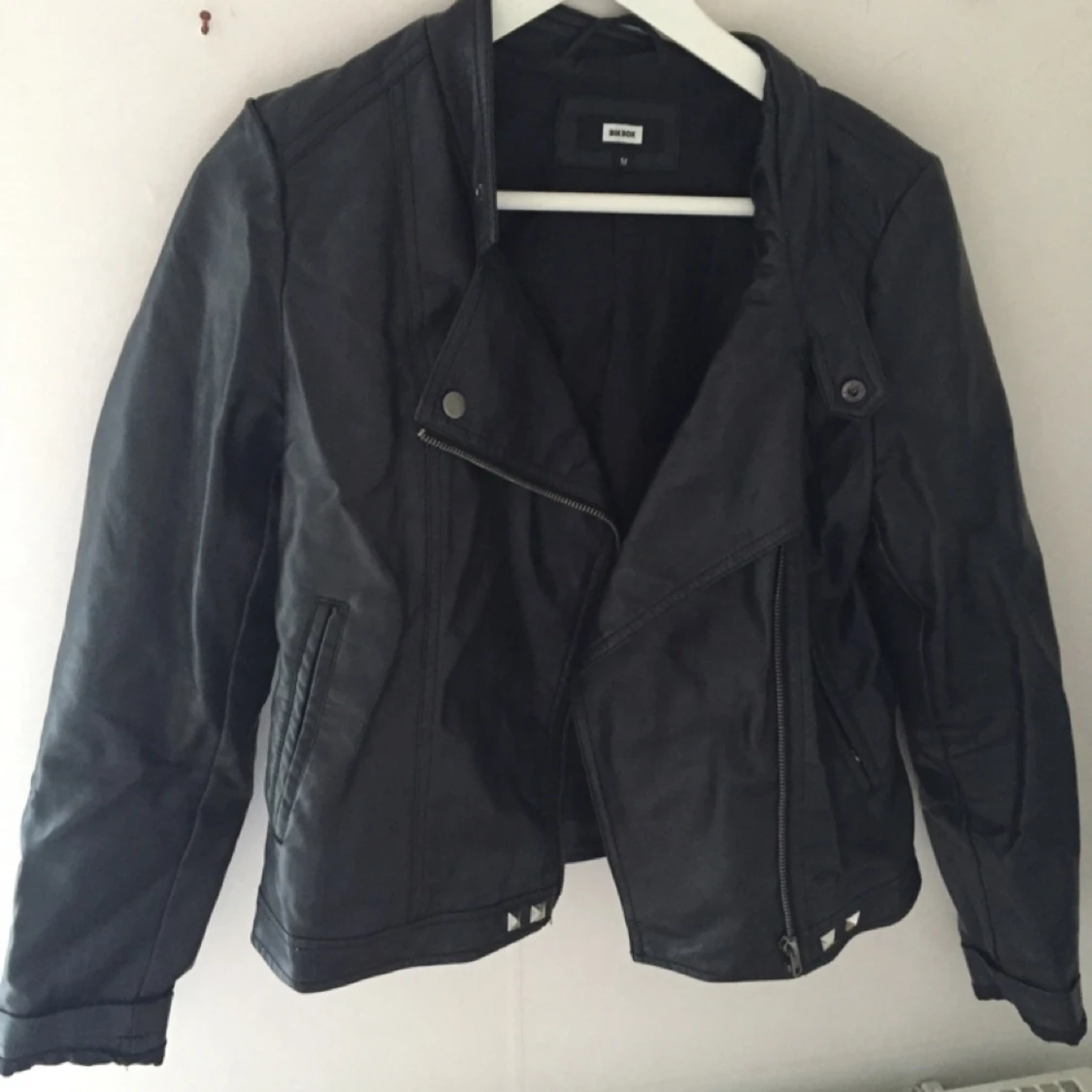 Skinnjacka med nitar på längst ner. Kommer från bikbok, i storlek M men sitter som S. Lite skrynklig men det kan fixas :)