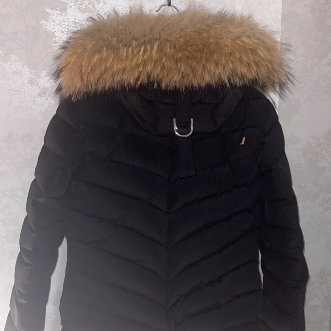 Några år gammal hollies vinterjacka med äkta päls i storlek XS/34. I jättebra skick. Lite smink fläckar på kragen, kan tvätta den innan leverans.
