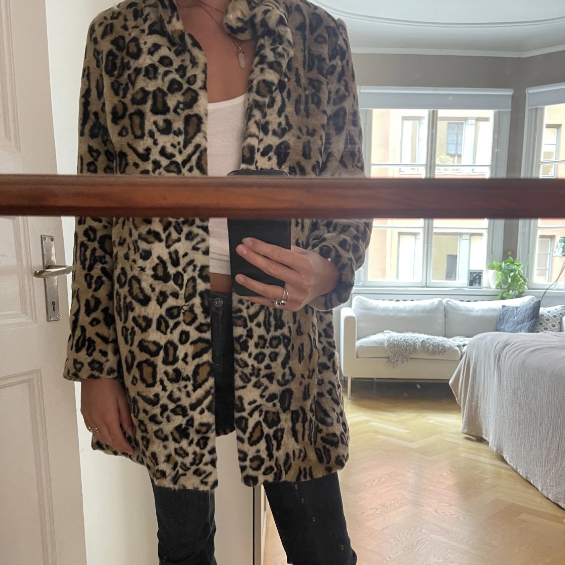 En leopardpälsjacka som funkar både höst och vinter.