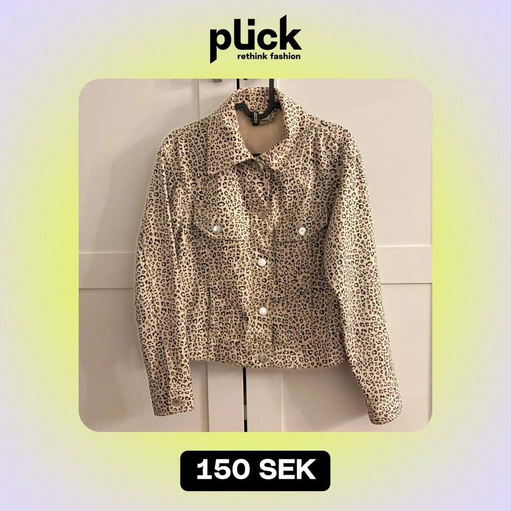 Säljer en supercool leopardmönstrad jacka i beige och svart. Den har långa armar och knappar framtill.