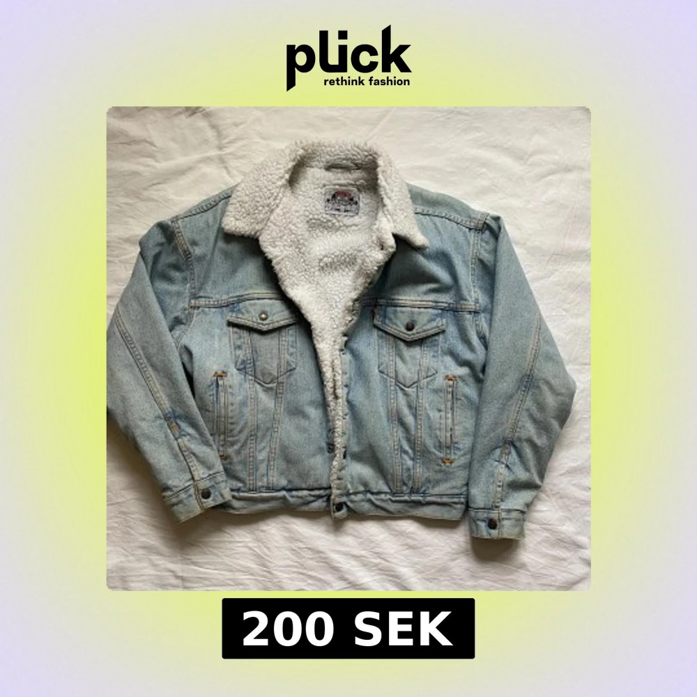 Säljer en vintage ljusblå jeansjacka från Levi's med vitt teddytyg inuti. Jackan har en fläck på ena armen som syns på bilden. Ganska står passform, går mot L