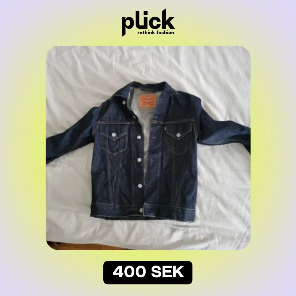 Oanvänd mörkblå Levis jeans jacka. Strl S tror att det är herr jacka då den är ganska stor, funkar perfekt för kvinnnor strl M-L. Mått rygg 43cm Längd 60cm Arm 61cm Obs: Det går alltid att diskutera priset ; )
