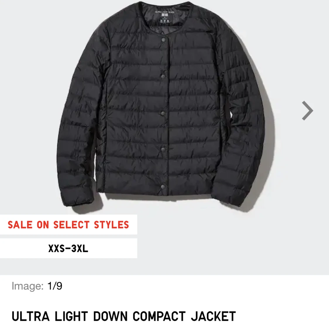 Ultra light down compact jacket från Uniqlo i färgen grön, den ser svart ut i vissa ljus, nypris 799kr🩷 bra skick inga defekter