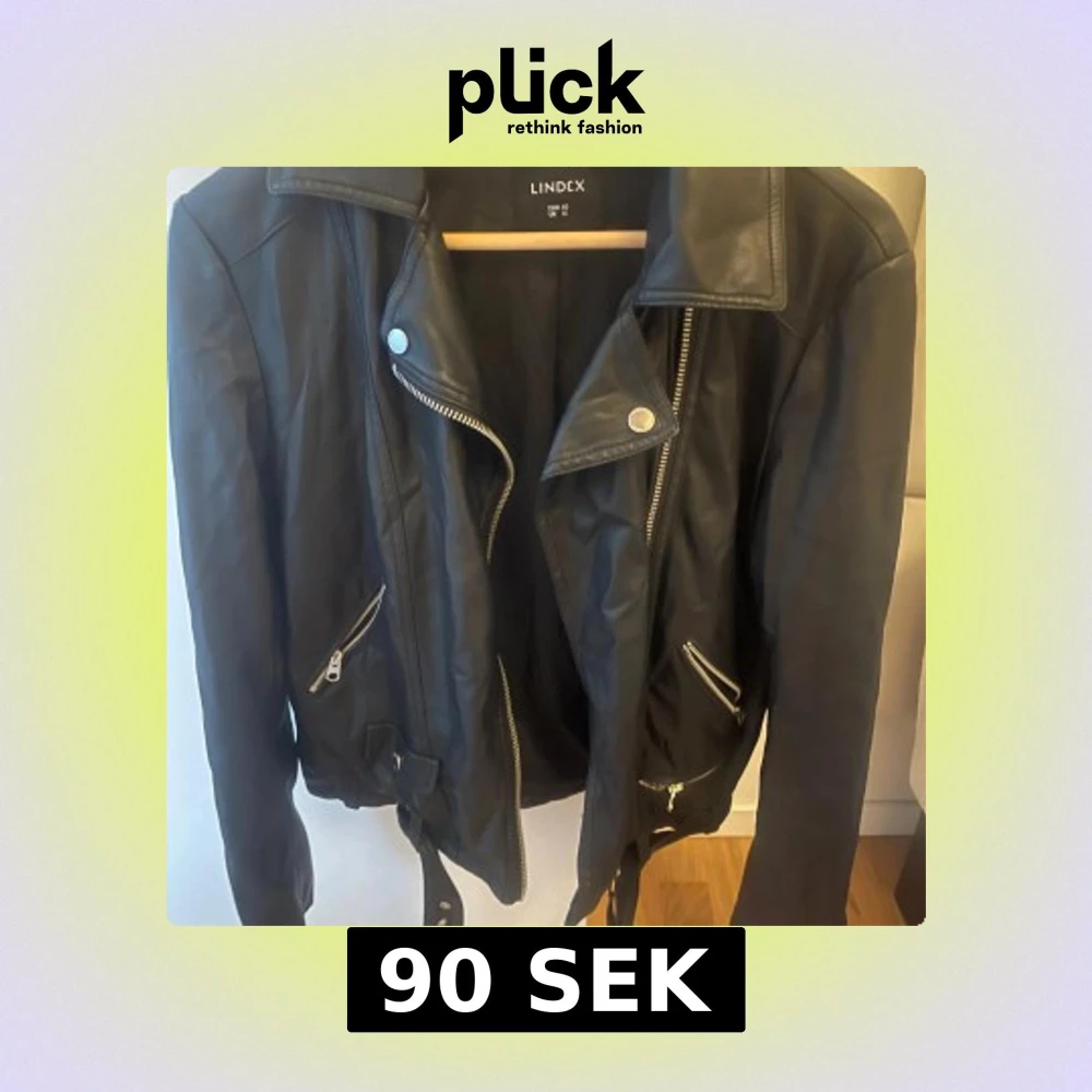 Snygg svart skinnjacka från Lindex med klassisk bikerstil. Jackan har silvriga dragkedjor, knappar och bälte nedtill. Långärmad modell med coola detaljer och flera fickor framtill.