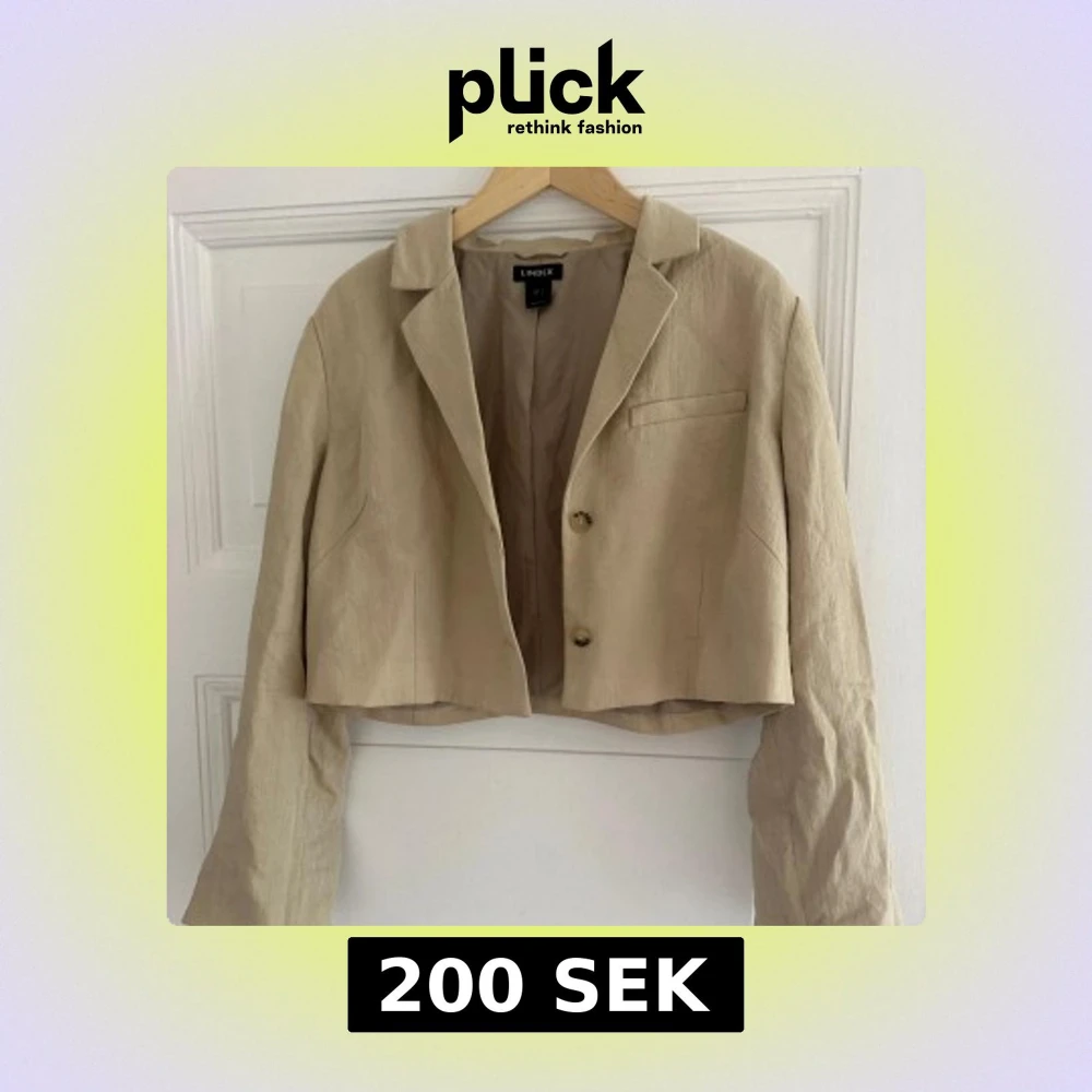 Snygg croppad kavaj från Lindex i beige linne. Klassisk krage, två knappar framtill och långärmad modell. Perfekt för dig som gillar stilrena och trendiga plagg med en modern twist. Passar dig som vill ha en lätt och luftig jacka med cool siluett.