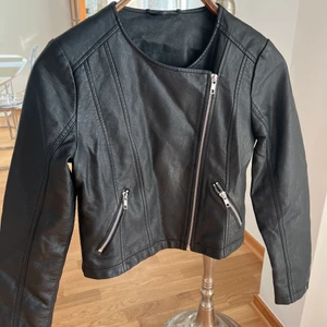 Vit teddyjacka med svarta detaljer - Superfin teddy jacka från hm, köpt här på plick! Ej använd av mig utan säljer då den var för liten! Skriv för frågor/ egna bilder!🥰🤍