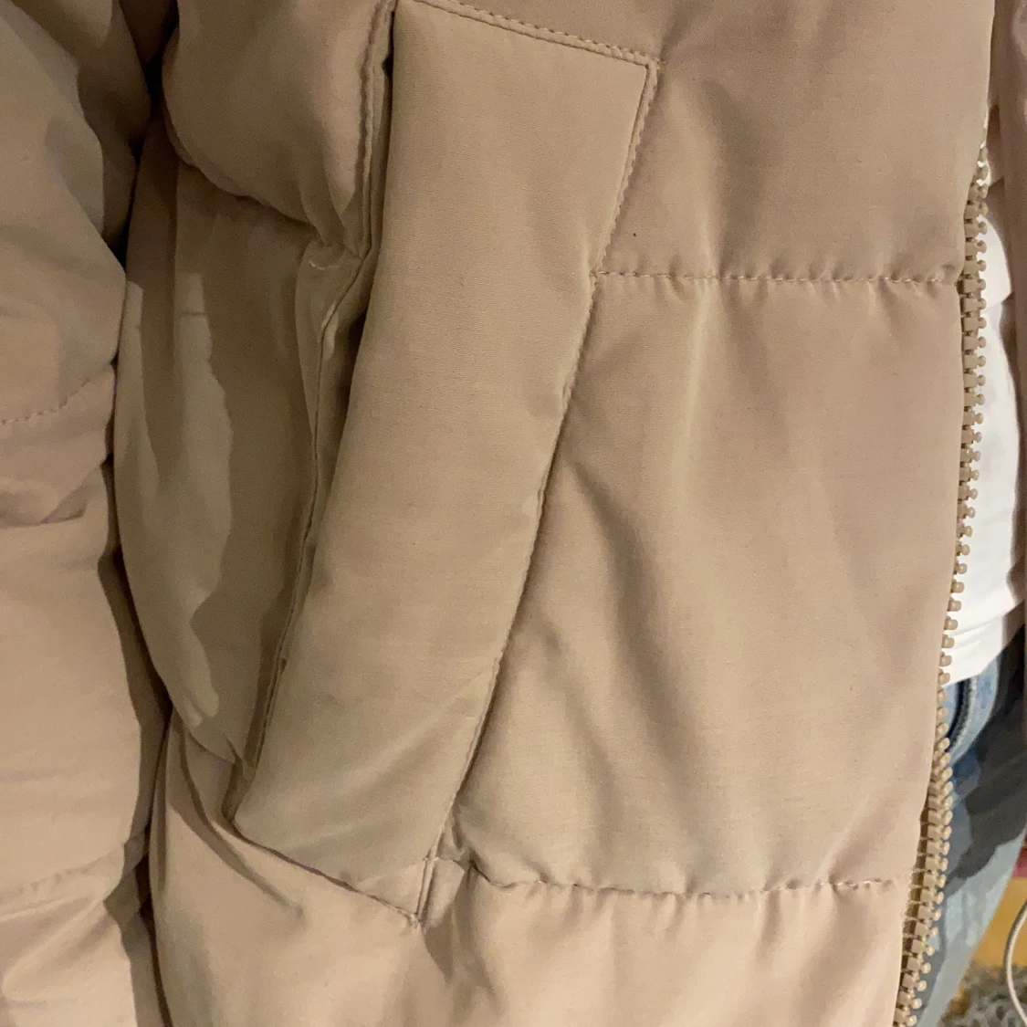 En jacka i mörkare beige. Den är från Lindex i storlek S. Köpt begagnad men fint skikt och har inte kommit till användning bara. Säljs för 200 kr + frakt.