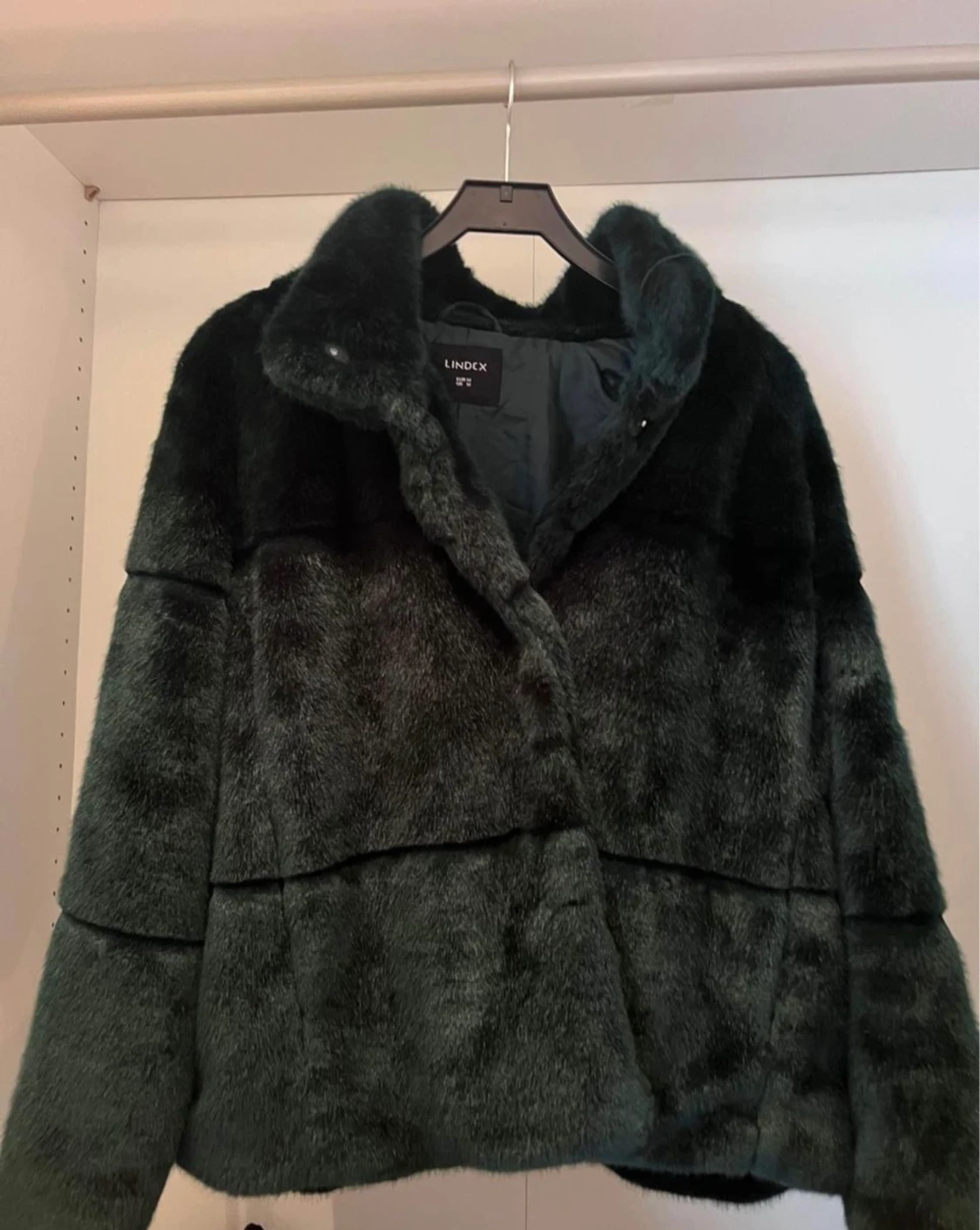 Mörkgrön jacka i fuskpäls från Lindex, storlek M