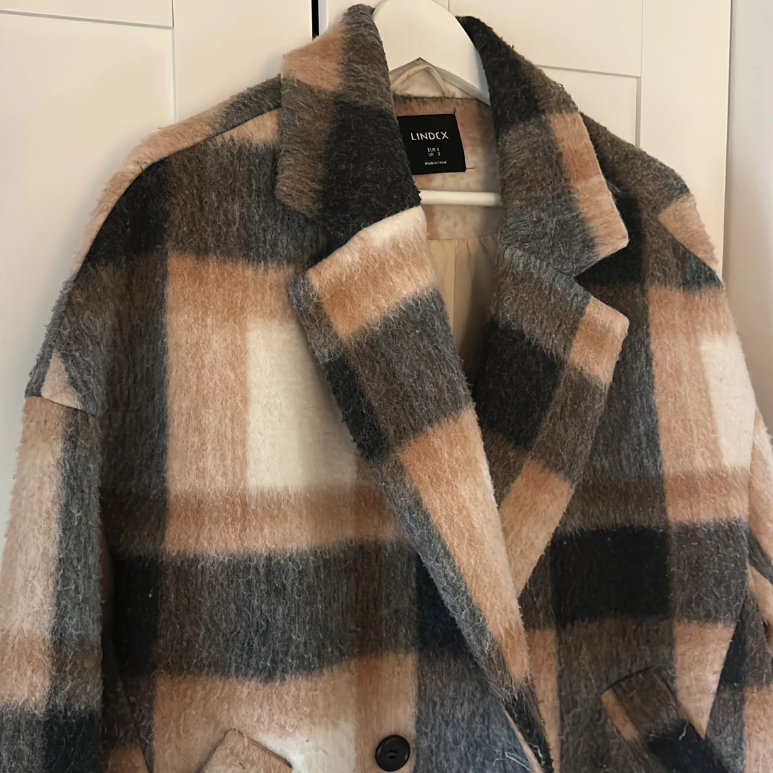 Ulljacka från Lindex, något fodrad. Storlek S, men ngt stor i storleken beroende på hur man vill ha den. Fint skick förutom att ullen blivit lite nopprig.