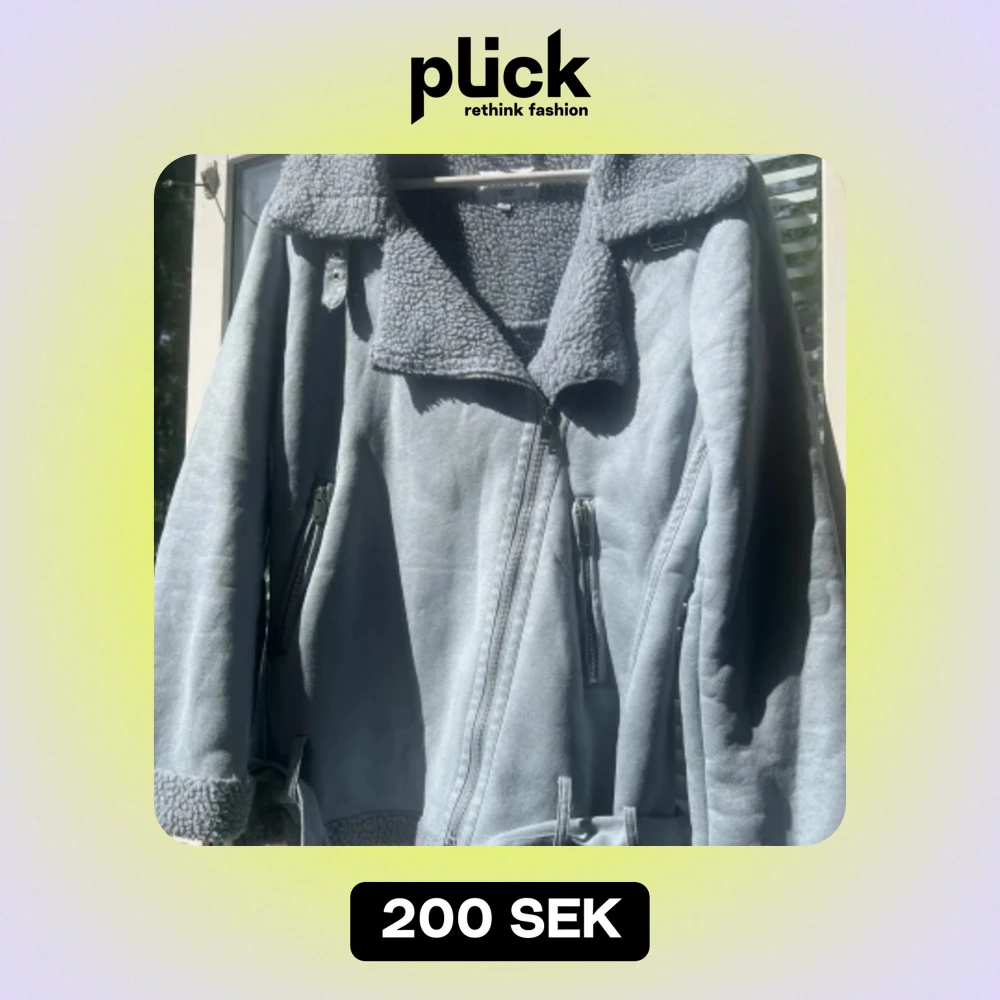 En fin ljusblå jacka från NA-KD, storlek 32, oversize, använts men är i bra skicka utan några skador eller fläckar, fina detaljer, och har mysigt och vart material inuti som är perfekt nu är det börjar bli kallare.