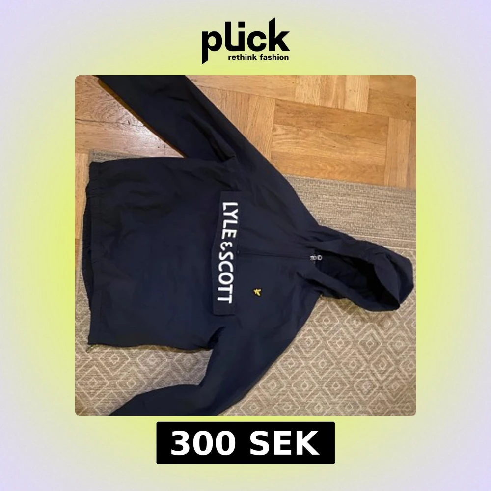Snygg svart vindjacka från Lyle & Scott med dragkedja och huva. Jackan har en stor logotyp på framsidan och en liten gul logotyp på bröstet. Perfekt för blåsiga dagar.
