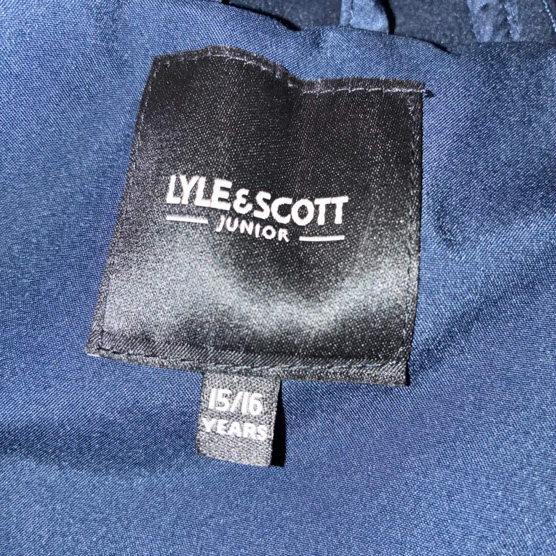 Snygg mörkblå vindjacka från Lyle & Scott Junior med huva och dragkedja framtill. Jackan har en gul logga på bröstet och praktiska fickor. Perfekt för dig som vill ha en stilren och sportig look.