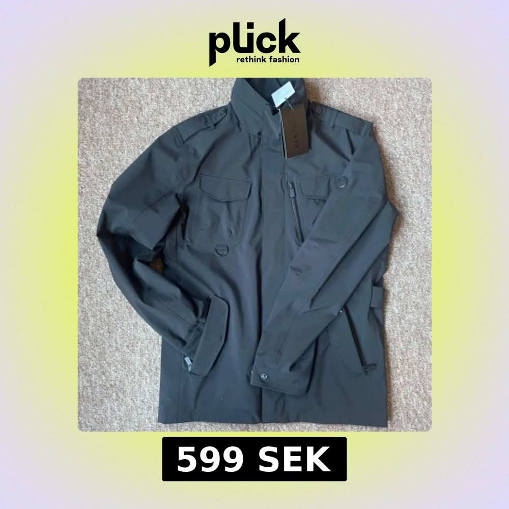 Snygg svart jacka från Snoot med flera praktiska fickor och dragkedjor. Jackan har en stilren design med hög krage och knappar på axlarna. Perfekt för en modern look. Kostar runt 5 tusen i butik. Helt ny.