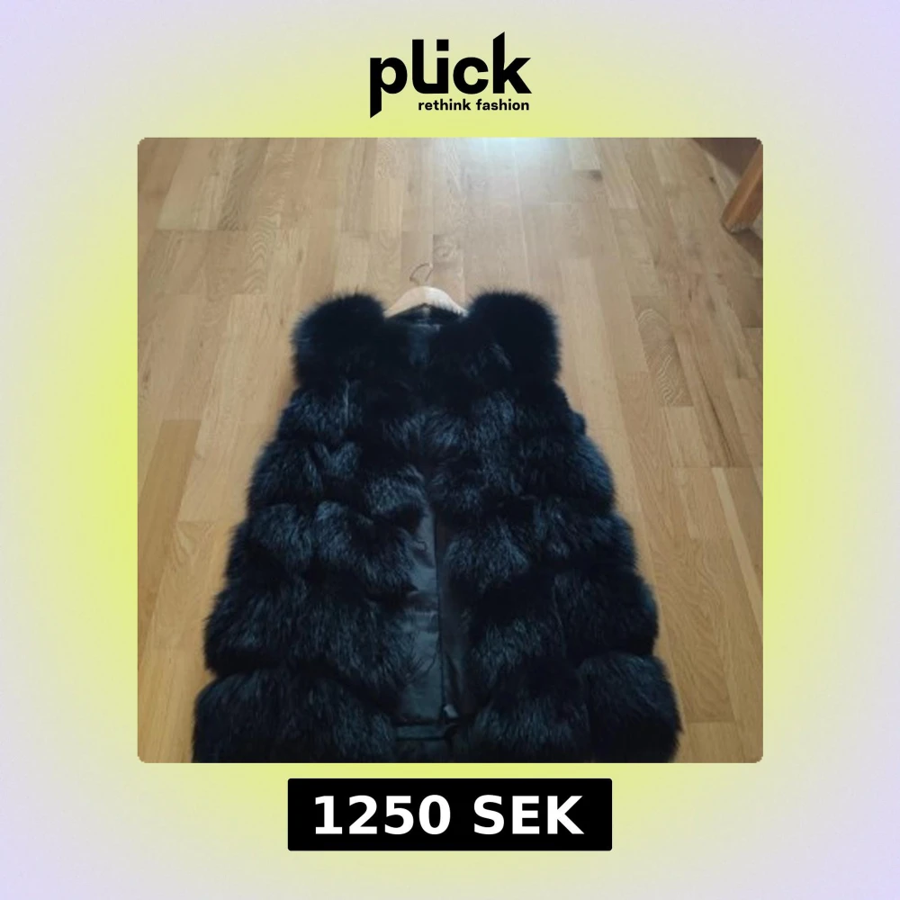 Säljer en svart pälsväst med riktigt fluffig och voluminös look. Västen har breda, horisontella sektioner och är fodrad på insidan. Perfekt för dig som vill sticka ut och hålla värmen under kyliga dagar.