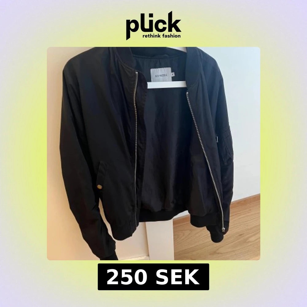 Snygg svart bomberjacka från Size Needle med dragkedja framtill och ribbade muddar vid ärmslut och nederkant. Jackan har en klassisk bomberstil med fickor och en bekväm passform. Perfekt för en cool och avslappnad look. Priset kan diskuteras! 🖤