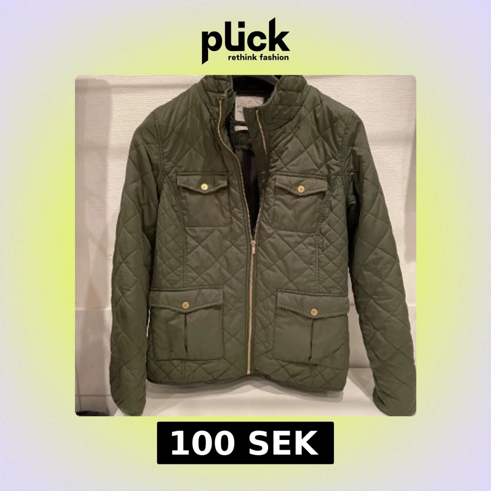 Snygg olivgrön quiltad jacka från Holly & Whyte by Lindex. Jackan har fyra fickor med lock och guldiga knappar, dragkedja framtill och mjukt foder. Perfekt för dig som vill ha en stilren och bekväm jacka med coola detaljer.