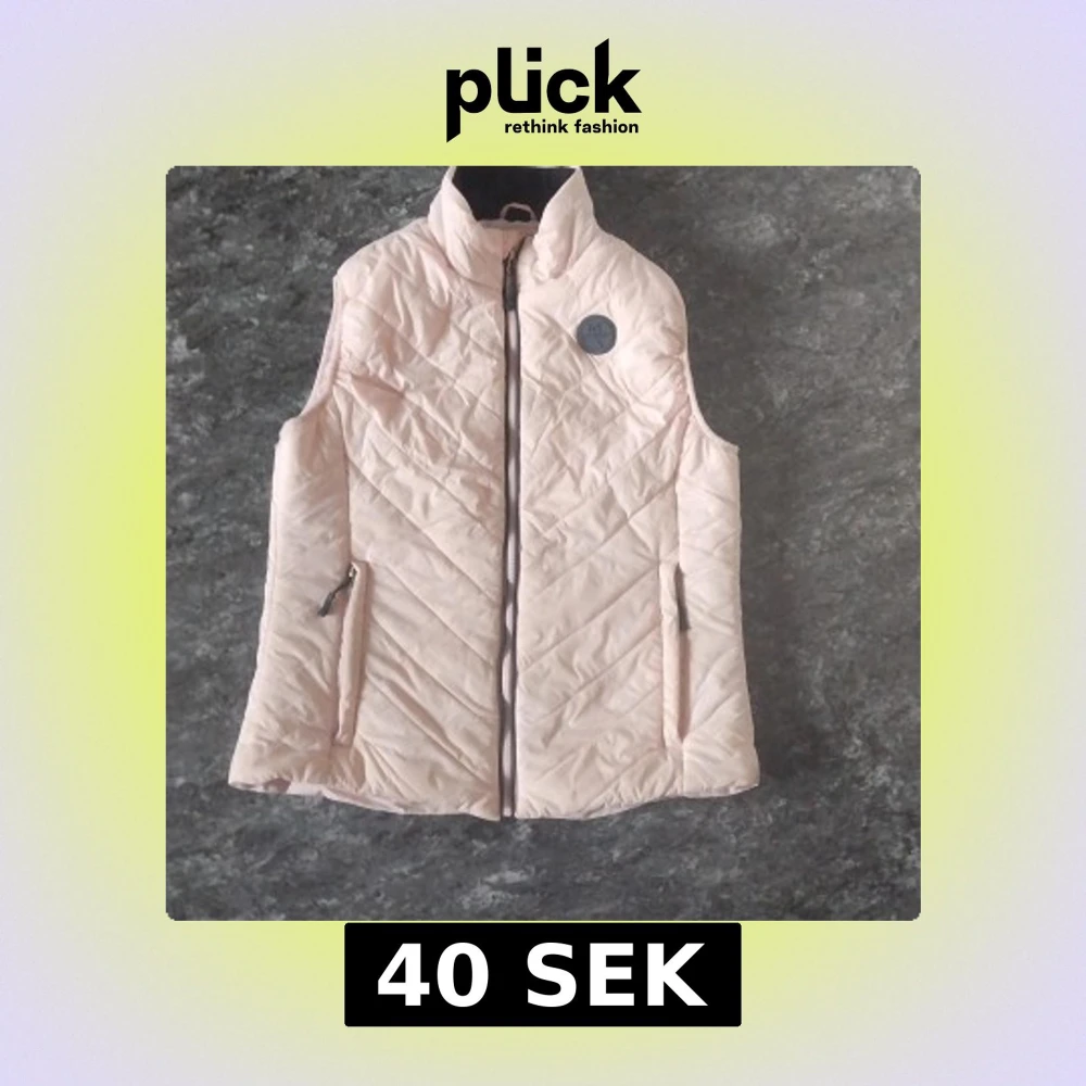Supersnygg ljusrosa dunväst quiltat mönster och hög krage. Västen har två fickor med dragkedja och en diskret logga på bröstet. Perfekt att slänga över en hoodie för extra värme och stil.