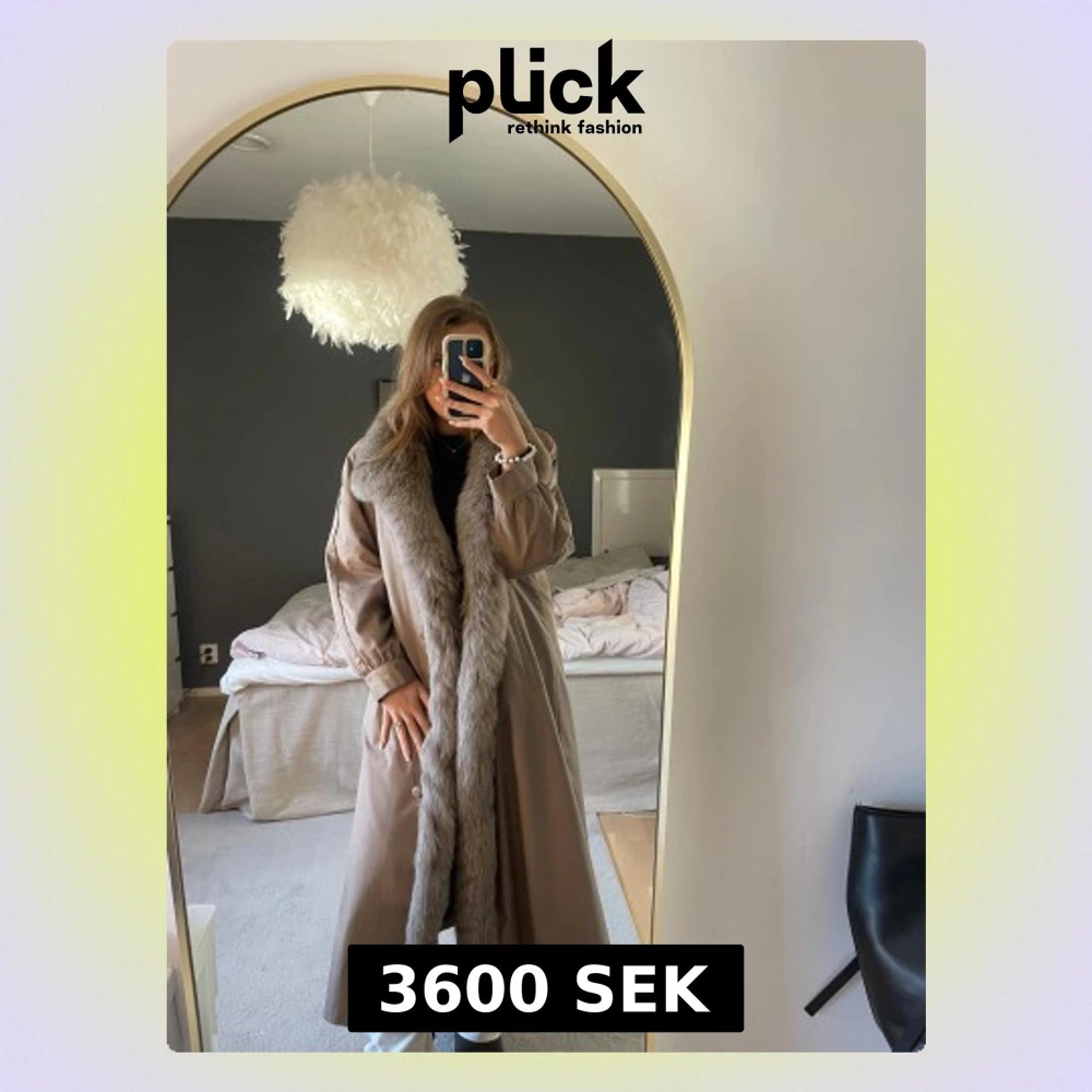 Säljer en beige lång kappa med bred krage och framkant i fluffig gråbrun päls. Insidan är fodrad med mörkbrun päls, vilket gör den extra varm. Jackan har en loose passform och långa ärmar, perfekt för dig som vill ha en statement piece i garderoben. Pälsen som sitter på kragen är troligtvis oäkta.