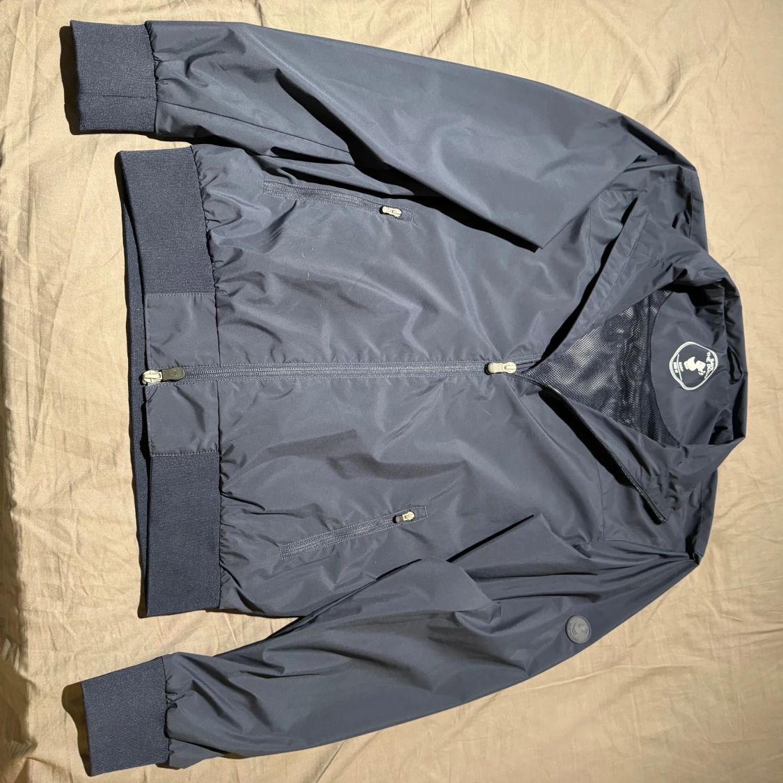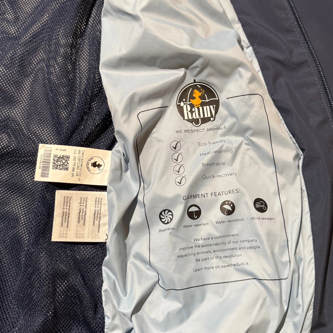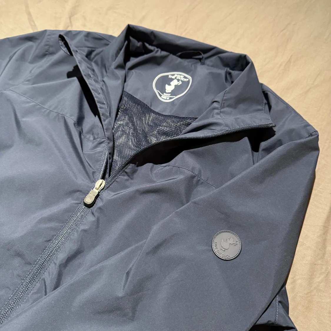 En mörkblå vind/ regn jacka från Save the duck i storlek M. Jackan är mot regn och vind som det står på sista bilden, Den är i väldigt bra skick. Skriv om du har frågor!