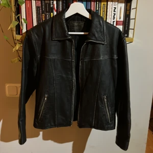 Läderjacka med utekonsertskänsla. Bra men nött skick. Redigt läder.