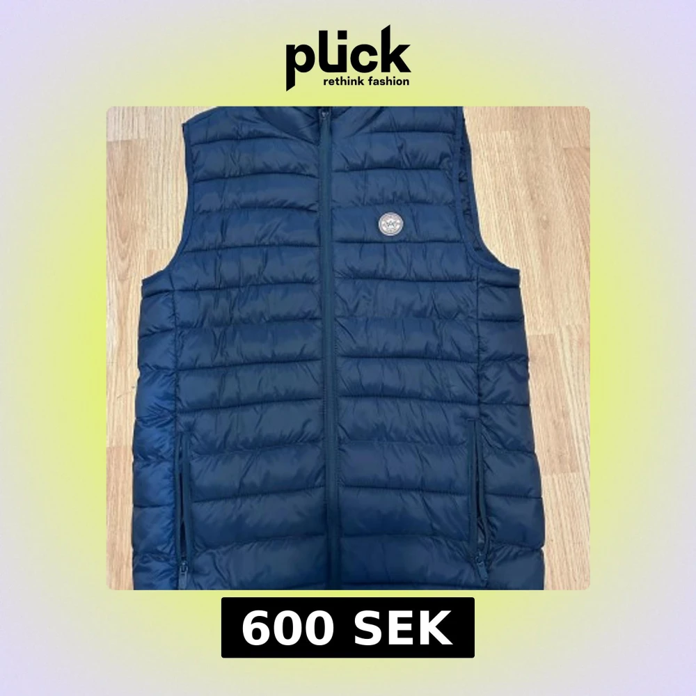 Snygg mörkblå dunväst från Kronstadt med quiltad design och dragkedja framtill. Västen har två praktiska fickor med dragkedja och en rund logotyp på bröstet. Perfekt för lager-på-lager och chill stil under höst och vinter.