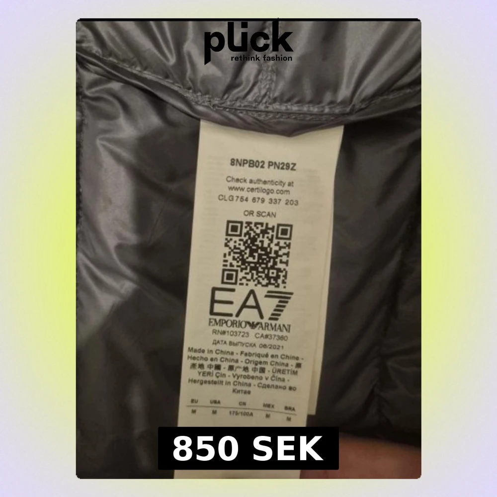 Säljer en grå pufferjacka från Emporio Armani EA7 med huva och dragkedja framtill. Jackan har quiltad design och logga på bröstet. Perfekt för dig som vill ha en snygg och lätt jacka med stilren look. Materialet är polyester och jackan är långärmad.