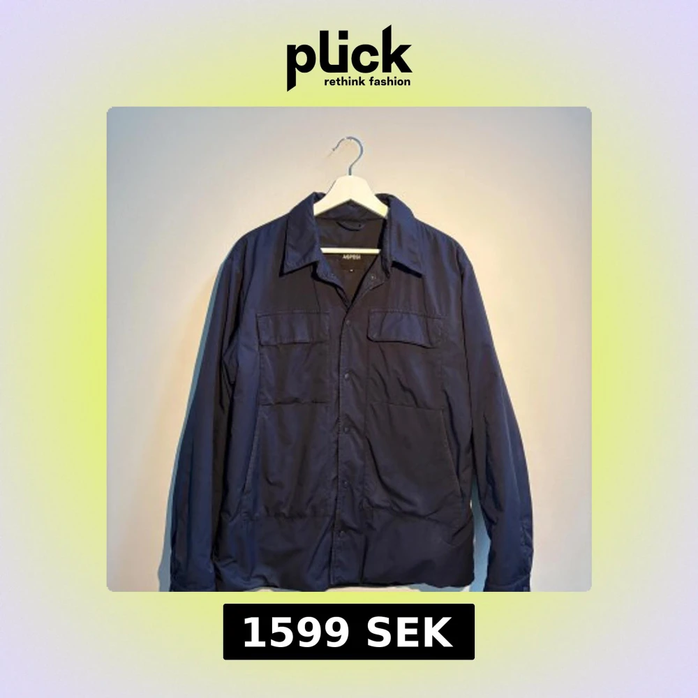 Stilren mörkblå overshirt från Aspesi med klassisk krage, tryckknappar och stora bröstfickor. Jackan har en enkel och clean look, perfekt för lager-på-lager. Tillverkad i lätt polyester som ger en smidig känsla och passar till många outfits.