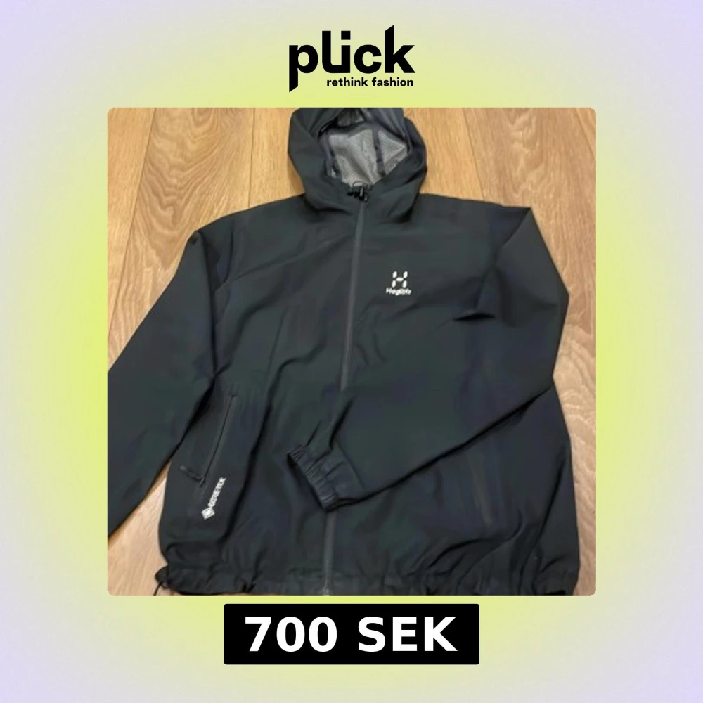 Säljer en svart vindjacka från Haglöfs i Gore-Tex-material. Jackan har en huva och dragkedja framtill samt två sidofickor med dragkedjor. Perfekt för utomhusaktiviteter med sitt slitstarka och vattentäta material. Nypris 2500!