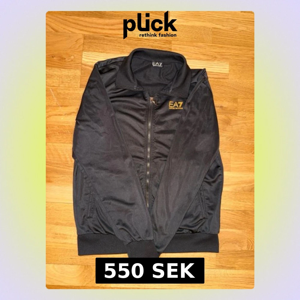 Säljer en svart bomberjacka från EA7 Emporio Armani med gul logga på bröstet. Jackan har dragkedja framtill, ribbade muddar vid ärmslut och midja samt två sidofickor. Perfekt för dig som vill ha en stilren och sportig look.