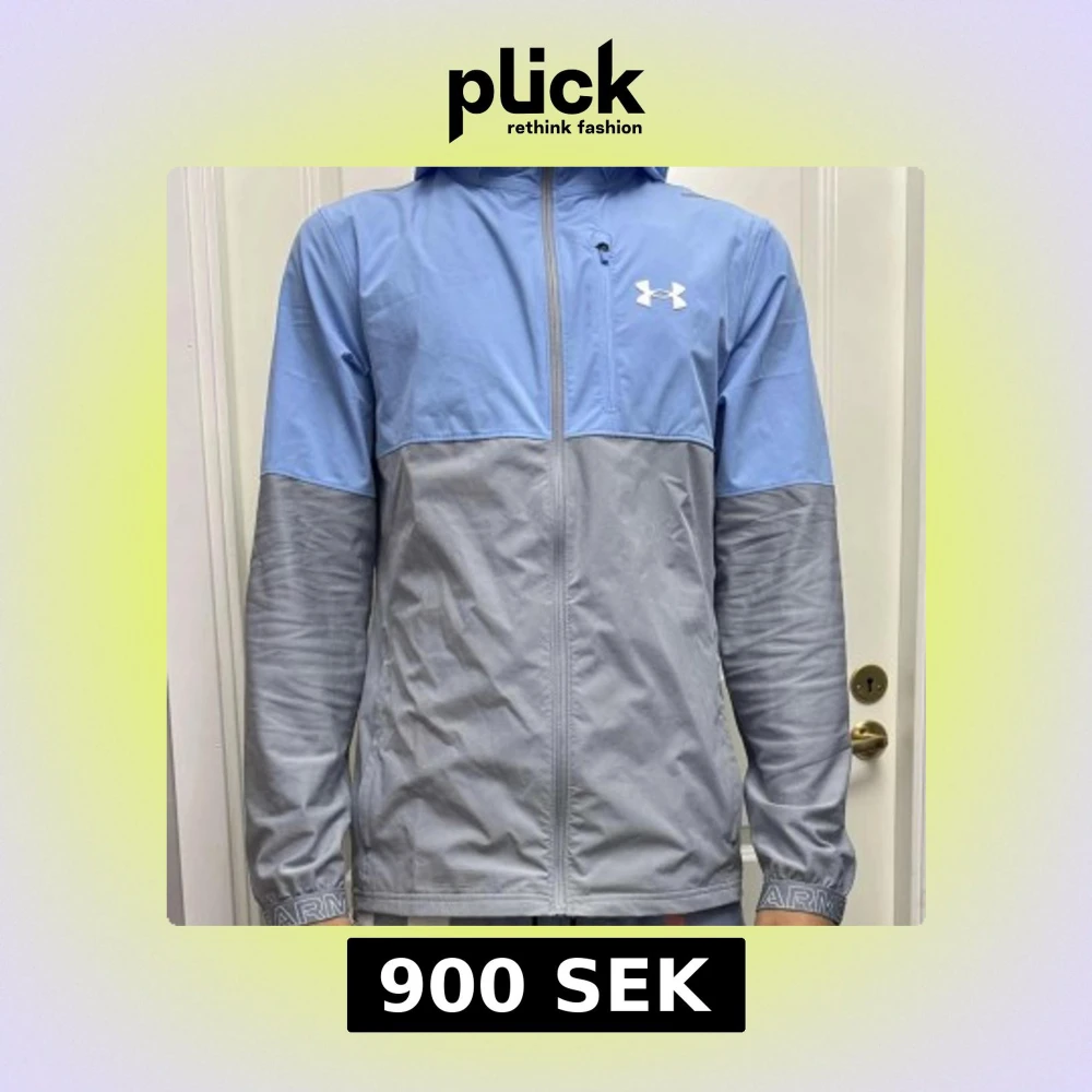 Snygg tvåfärgad vindjacka från Under Armour i ljusblått och grått. Jackan har huva, dragkedja framtill och en diskret logga på bröstet. Perfekt för dig som gillar sportig stil och vill ha något lätt och smidigt till vardags. Modellen är 187