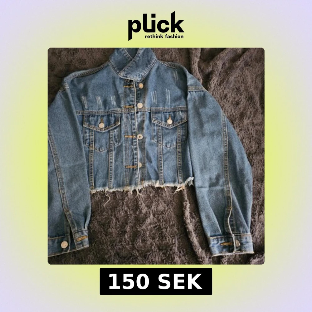 Snygg croppad jeansjacka i blått med slitna detaljer och knappar framtill. Jackan har två bröstfickor med knapp och fransig nederkant för en trendig look. Perfekt för en avslappnad stil.