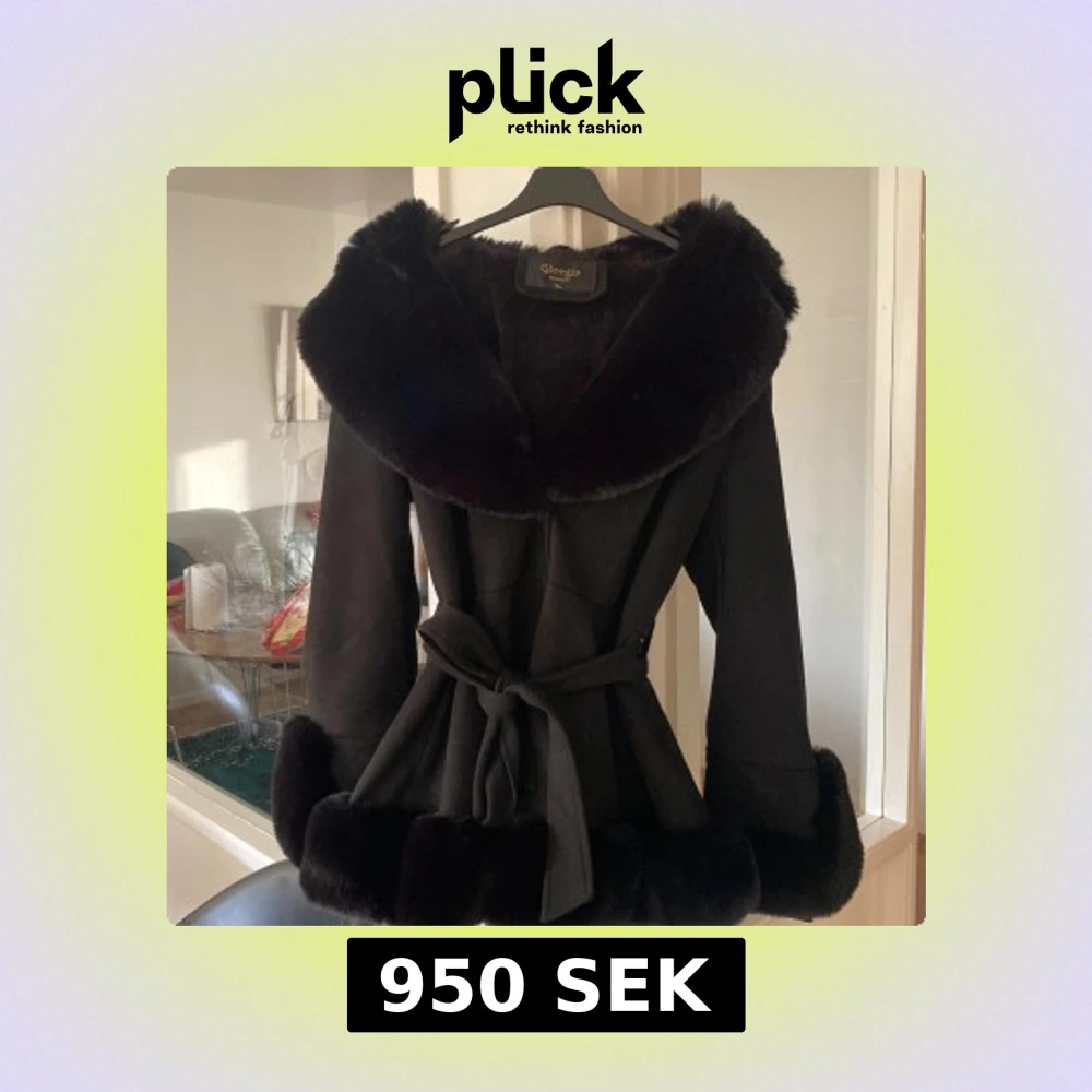 Snygg svart pälsjacka från Giorgia Fashion i storlek S/M storleken XL är fel. Jackan har stora fluffiga pälskanter vid krage, ärmslut och nederkant samt ett bälte i midjan för extra snygg siluett. Perfekt för dig som vill sticka ut med en lyxig och trendig look under vinter och hösten.