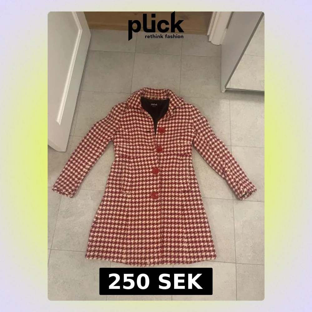 Säljer en snygg röd och vit rutig kappa från Killah i storlek medium. Jackan har stora röda knappar framtill och bak, klassisk krage och långärmad design. Materialet är tjockt och känns som ullblandning, perfekt för höst och vinter.