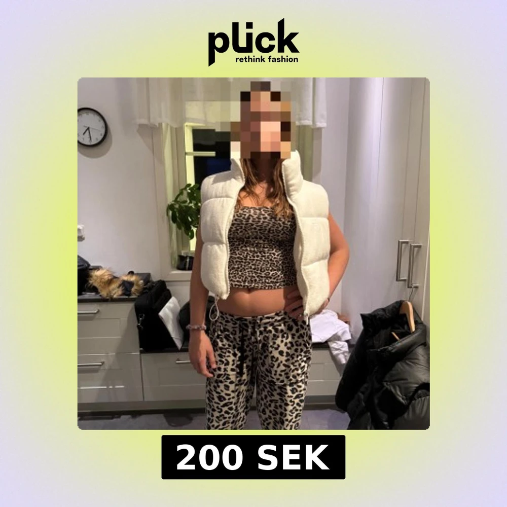 Säljer en fluffig, croppad vit dunväst med hög krage och dragkedja framtill. Västen har quiltad design och är perfekt att slänga över en hoodie eller långärmad tröja för en trendig look. Enkel och stilren, passar till det mesta.