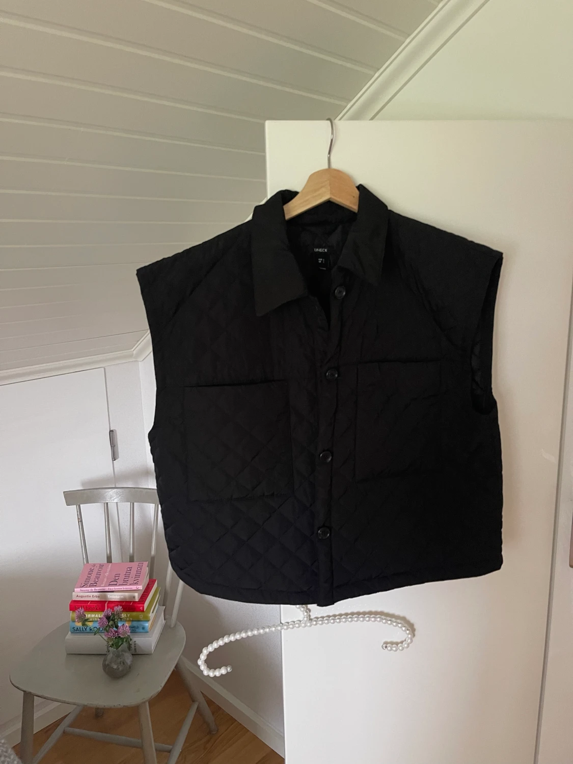 Fin quiltad väst från lindex i storlek L, passar även m enligt mig🩷