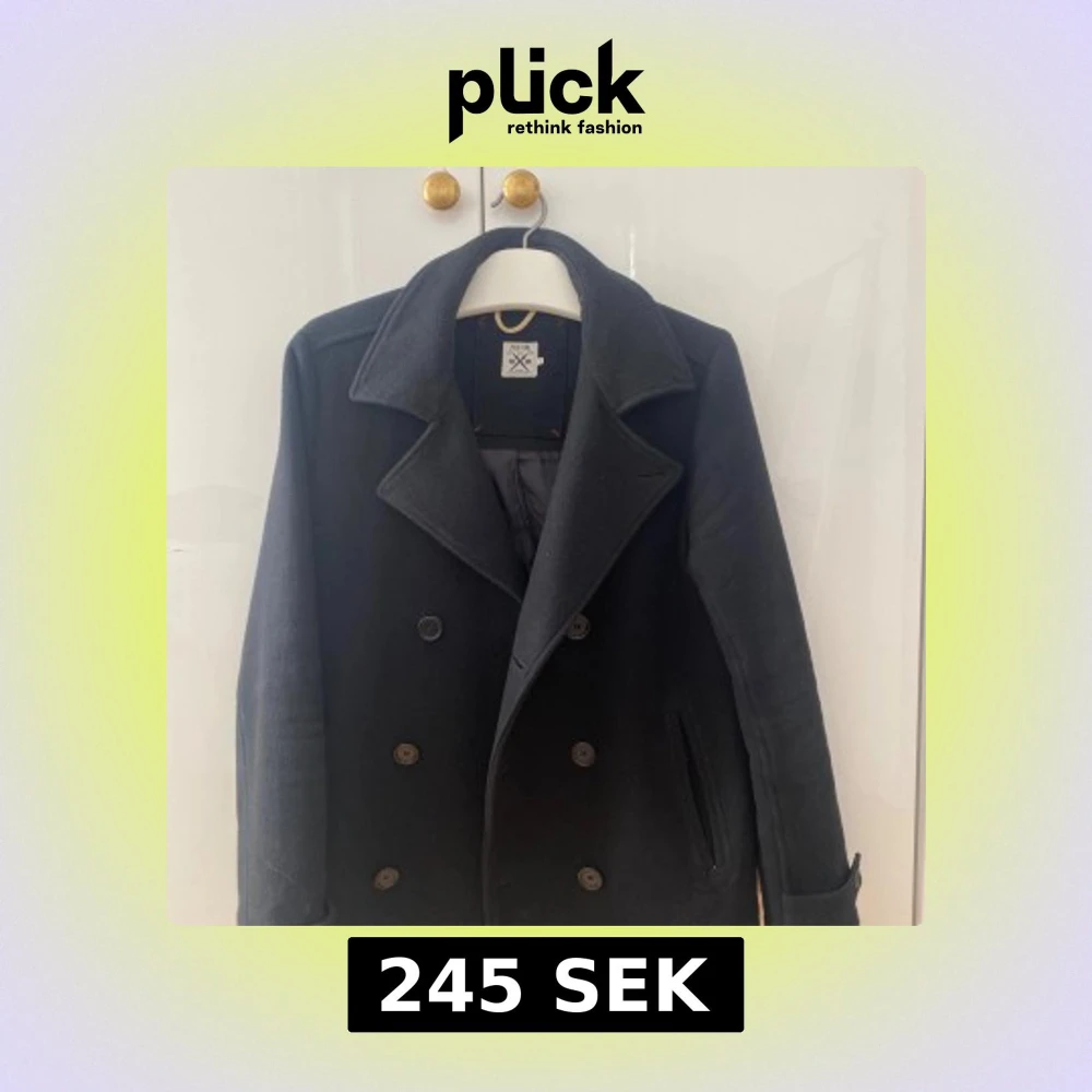 Svart skepparkavaj med bred krage - Säljer en svart skepparkavaj med bred krage och dubbelknäppning framtill. Jackan har två sidofickor och är tillverkad i ett tjockt ullmaterial som håller dig varm. Passformen är normal och den har långa ärmar. Perfekt för dig som gillar klassisk stil med en modern touch.