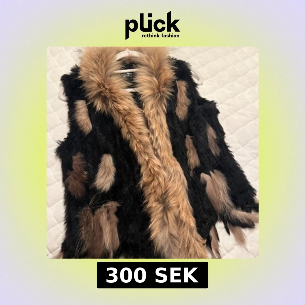 Säljer en fluffig pälsväst från Hollies i svart med bruna och beige inslag. Västen har en bred krage i ljusbrun päls och coola detaljer med olika färgade pälsfläckar. Perfekt för att ge din outfit extra edge och värme under kyliga dagar.