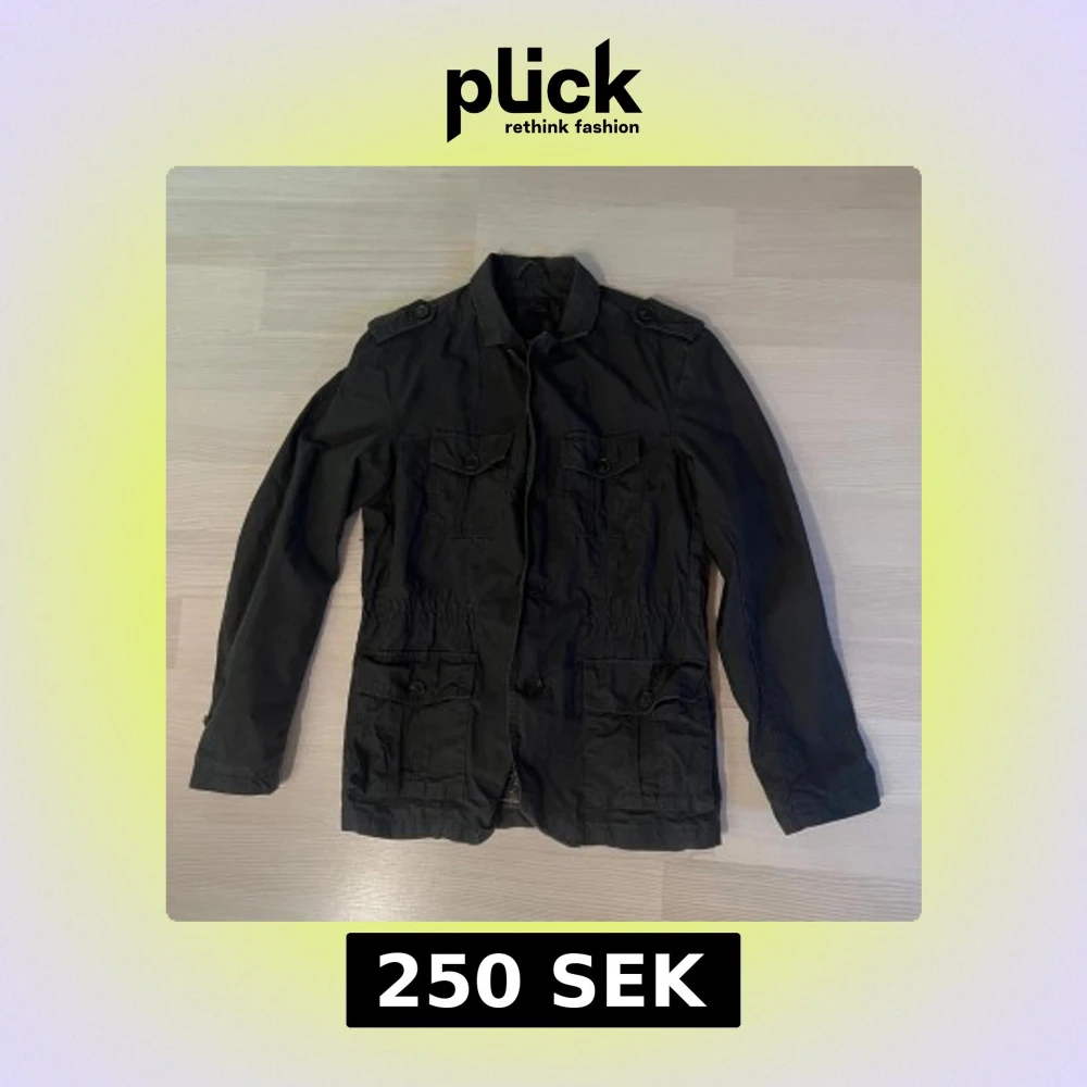 Svart jacka från Reserved med fyra stora fickor framtill, axelklaffar och knäppning med knappar. Jackan är i storlek S men passar som M, nypris 749 kr, mitt 250 kr