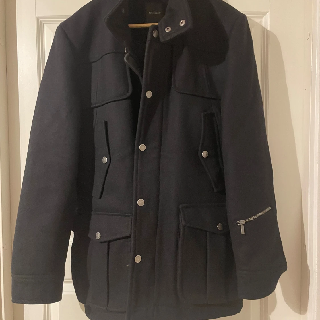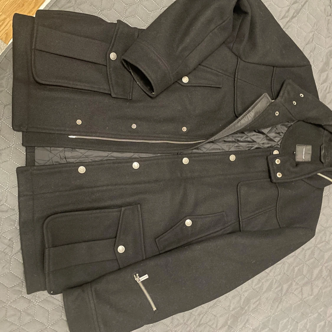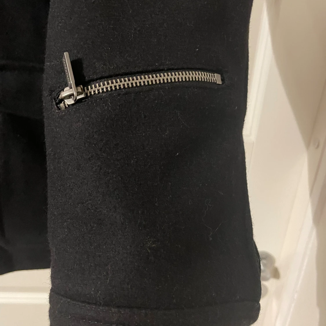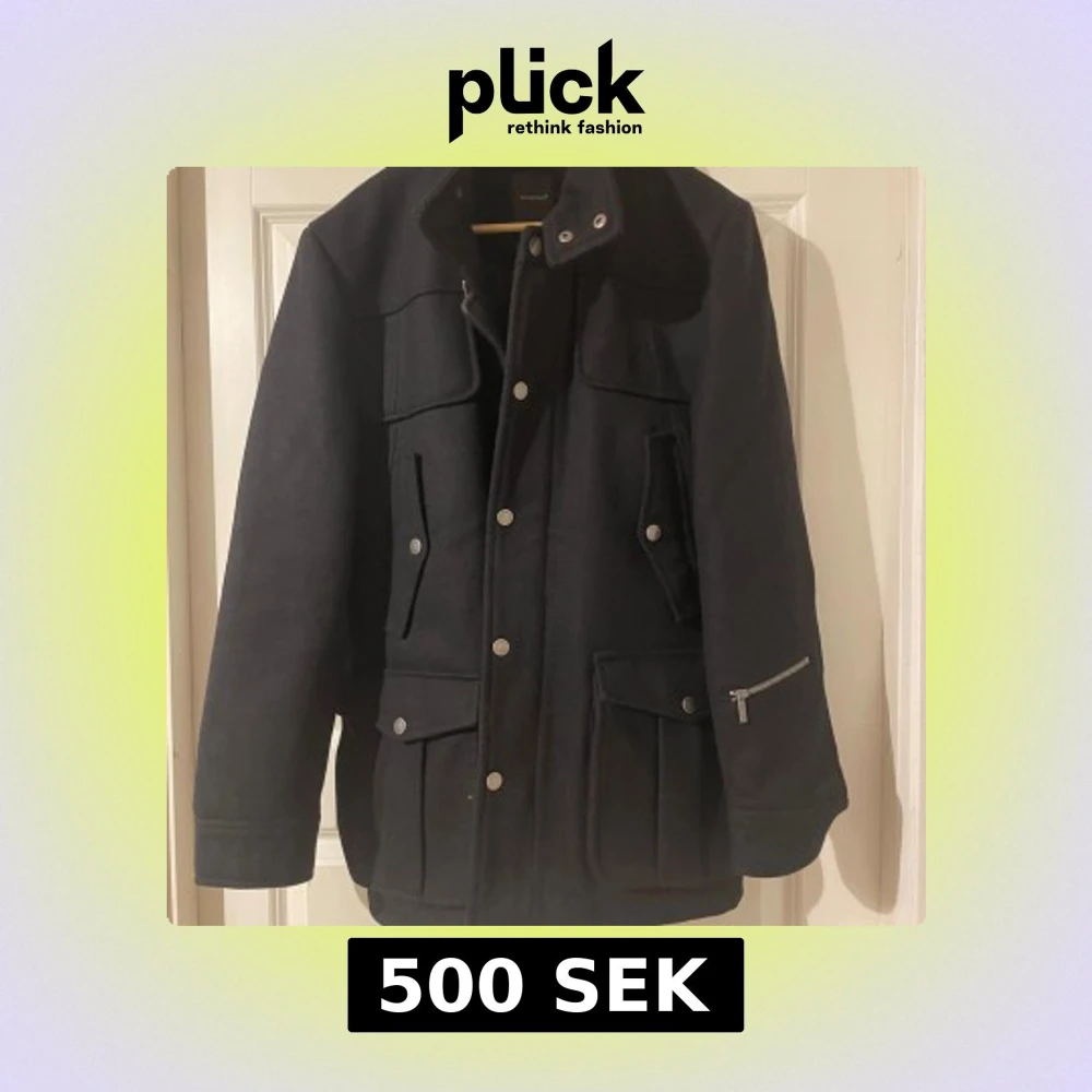 Svart rock från Blueprint med snygga detaljer som silverfärgade knappar och dragkedja på ärmen. Jackan har flera stora fickor rfärgade knappar och dragkedja på ärmen. Jackan har flera stora fickor framtill och en klassisk krage. Materialet är ull och insidan är quiltad för extra värme. Perfekt för höst och vinter.