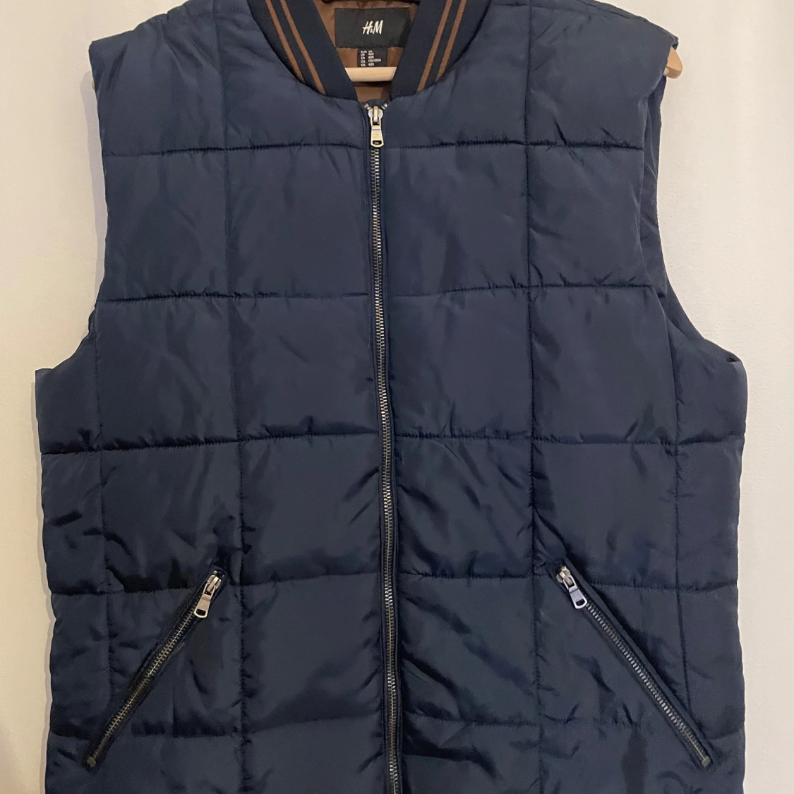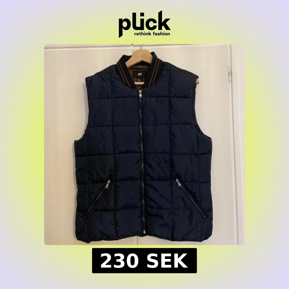 Säljer en mörkblå väst från H&M med dragkedja framtill och två fickor med dragkedjor i strl 50. Skriv om du har frågor!