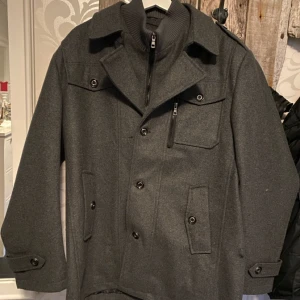 Snygg grå rock med både dragkedja och knappar framtill. Den har en klassisk krage och flera fickor för praktisk användning. Perfekt för kyligare dagar med sin stilrena design. Helt nyköpt och aldrig använd, nypris är 1 000 kr i butik. Storlek L.