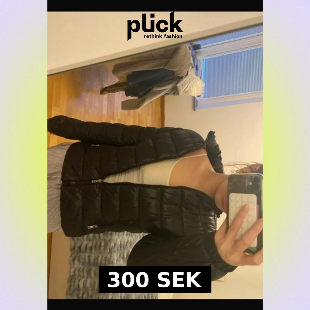 Säljer en svart pufferjacka med hög krage och två praktiska fickor med dragkedja. Jackan är quiltad och har en stilren look som passar perfekt till kalla dagar. Långärmad och med en snygg, normal passform. Perfekt för dig som vill ha en enkel men trendig jacka.