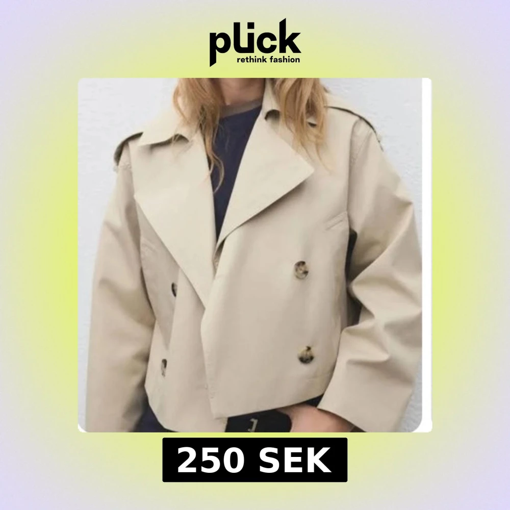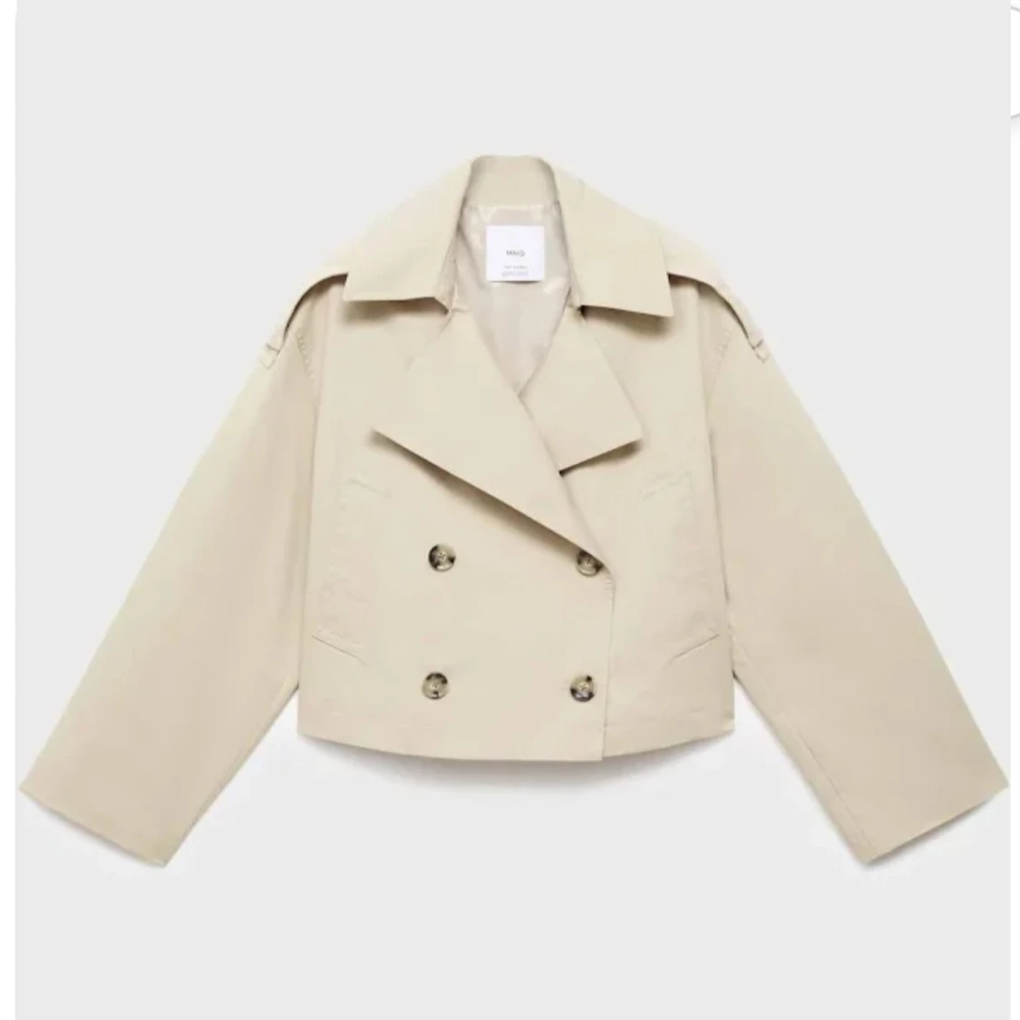 Snygg croppad trenchcoat från Mango i beige bomullsmix. Jackan har breda slag, dubbelknäppning med stora knappar och en loose passform. Tyvärr kommer den inte till användning ❤️
