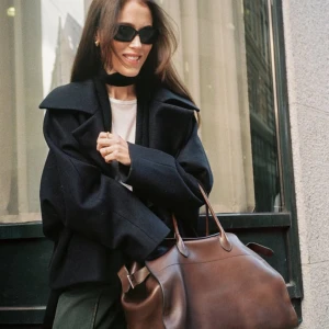 Snygg svart kappa från NA-KD med stora ärmar och lite oversized🤍använd vid ett tillfälle då jag har många jackor, nypris; 1099 kr