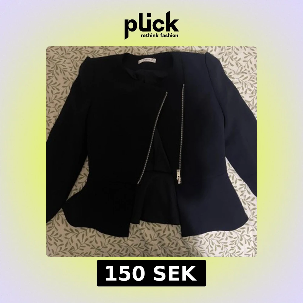Snygg svart kavajjacka från Mango med asymmetrisk dragkedja framtill. Jackan har figursydd passform, markerad midja och långa ärmar. Perfekt för en stilren look och passar till många olika outfits.